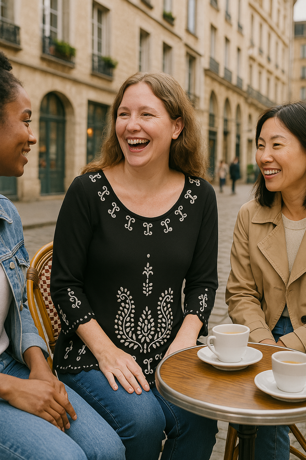 Designed with a relaxed fit, flared hem, and 3/4 sleeves, this tunic transitions effortlessly from a casual daytime outing to a cozy evening dinner. Whether you're sipping espresso at a café in Paris or enjoying a sunny brunch with friends, this top offers both style and ease.